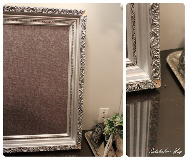 After it was all covered I popped it in the frame and realized the covered board was sticking out the back about 1/4 inch.